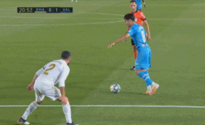 第21分钟,瓦伦西亚球员索莱尔左路传中,罗德里戈在禁区内突然插上近距离射门得分。主裁判先是判罚进球有效,之后接到了VAR的裁判的提醒,主裁判又来到场边观看视频回放,并最终改判进球无效。