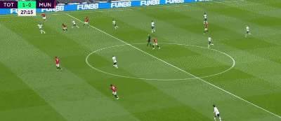 双方前30分钟互有攻守,比赛进行到第27分钟,奥利耶争抢球权成功,贝尔温带球加速突破到禁区直接爆射一脚,德赫亚扑了一下但是没有扑出,热刺1-0曼联!