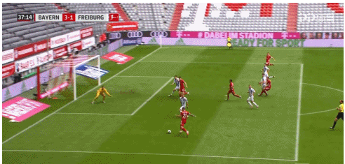 对阵弗赖堡,拜仁进行了大幅轮换,两翼的格纳布里和科曼换成了新人屈桑斯和辛格,这让莱万获得的支援有所减少,不过,这没有影响到莱万的发挥,而且,在球队前场攻击力减弱的情况下,莱万展现出更为全能的表现,第4分钟,他迂回到右路,给卢卡斯送出一记精彩的传中,只可惜后者没有把握住。随后,莱万在禁区内的支点作用展现无遗,先是第13分钟,接到穆勒斜传后,他禁区内头球回敲,给辛格创造出一次绝佳的射门机会。随后,第15分钟,接到穆勒右路传中后,莱万倚住后卫,冷静回敲,基米希跟上右脚推射远角破门。