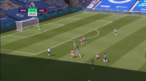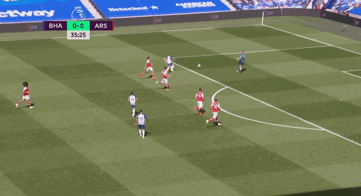 第36分钟,莱诺出击摘球时和莫佩相撞,莱诺落地时腿部扭伤被换下,替补门将马丁内斯出场。第42分钟,布莱顿右侧角球开出吊入禁区,第一点被后卫解围,大禁区线上埋伏的穆伊直接低平球抽射攻门,皮球被马丁内斯倒地没收。半场比赛结束,阿森纳0-0战平布莱顿。