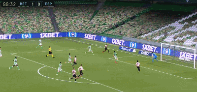 比赛临近尾声阶段,西班牙人快速反击,梅拉梅德高速推进在底线附近将球横传门前,武磊包抄到位出现在了门前1米的位置;然而不知道是否幸福来得太突然,武磊面对大半个空门却选择踢向中路,恰好被回过身来的贝蒂斯门将罗布尔斯将球扑出,西班牙人全场最好的一次得分机会就这样被武磊浪费掉了。