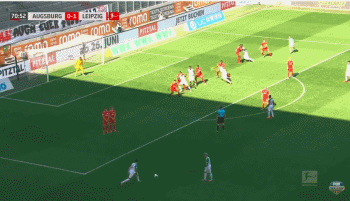 在第72分钟时,奥格斯堡扳平比分。在队友任意球射中人墙之后,瓦加斯禁区弧右侧右脚重炮轰门,皮球飞入球门右下死角。