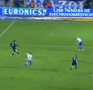 虽然这个进球是卡塞米罗打进,但大部分功劳却属于助攻的本泽马。当时本泽马在小禁区右侧拿球,身后有西班牙人后卫紧逼防守,本泽马无法转身射门。但本泽马却用右脚脚后跟一磕,把球从对方双腿之间传了出去,此时卡塞米罗顺势插上摆脱防守,在门前近距离射门得分。
