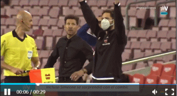 在巴萨2-2战平马竞之战中,格里兹曼在第90分钟才被换上,这被西媒称为“侮辱性换人”。在格里兹曼出场时,西蒙尼恰好就站在他身后。匪帅的目光中,透露出了怎样的信息?