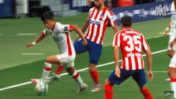 从动图中,能够更直观的看出久保健英有多么出色。马竞是西甲乃至全欧洲防守水平最高的球队之一,但久保健英却在万达大都会球场翩翩起舞,下图前场1V4巧妙摆脱传中。