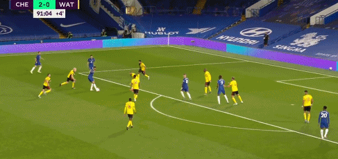 第92分钟,切尔西锁定胜局,奇克分球,阿斯皮利奎塔禁区左侧低传,巴克利12码处劲射上角入网,3-0。