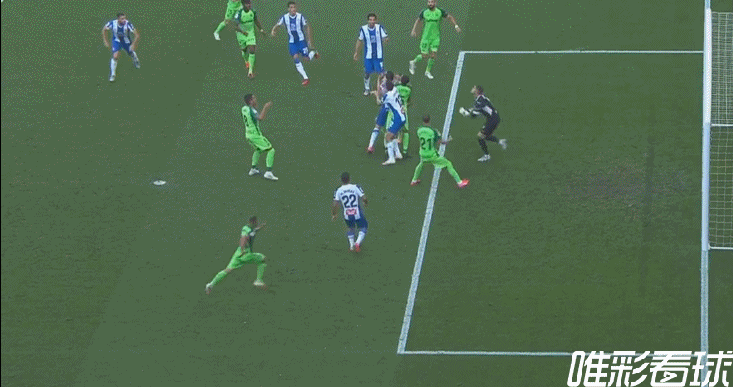 23分钟莱加内斯战术角球开出,45度低平球传中前点没人碰到被迭戈-洛佩斯没收。