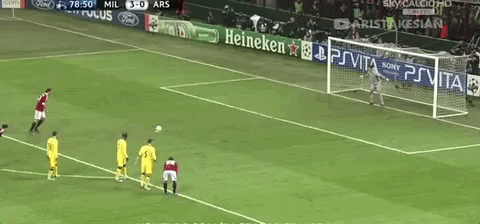 早在8年前的11-12赛季欧冠1/8决赛首回合中,伊布就曾在12码点与什琴斯尼较量。当时正值巅峰期的伊布同样效力于AC米兰,什琴斯尼刚刚在阿森纳打上主力1个赛季。比赛第78分钟,伊布被瑞士中卫朱鲁绊倒,红黑军团赢得点球。伊布亲自主罚命中,巧合的是,当时的伊布同样选择了左下角,什琴斯尼尽管判断正确方向,却依然没能摸到皮球。这场比赛伊布打进1球,并2次助攻罗比尼奥破门,帮助AC米兰4-0大胜对手。