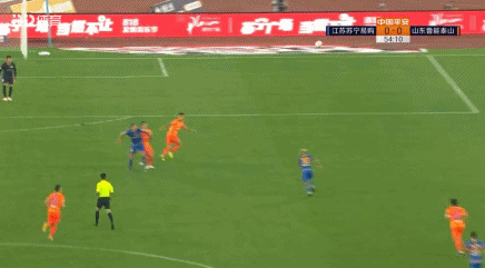 第54分钟,苏宁后场长传球到禁区前,戴琳在身后紧逼防守桑蒂尼,结果抬脚过高踢在了桑蒂尼的脸上,后者倒地,主裁顾春含向戴琳出示黄牌。