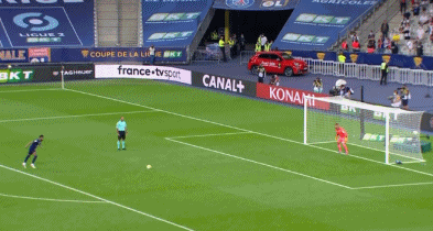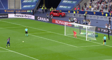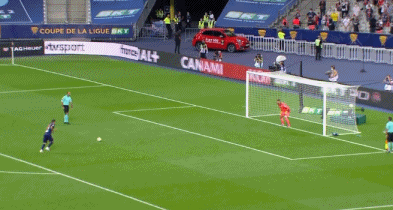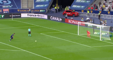 第5轮,奥亚尔主罚命中,内马尔四两拨千斤的一射将球送进球门,5-5。