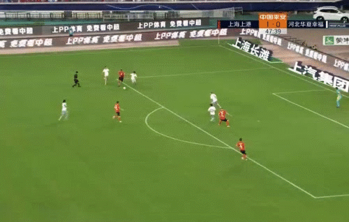第48分钟,上港闪击破门,洛佩斯左路带球长驱直入,连续甩掉两名华夏防守球员后来到禁区前沿,右脚脚内侧搓射,皮球被横梁挡出,阿瑙托维奇跟进停球劲射球门远角破门,2-0。