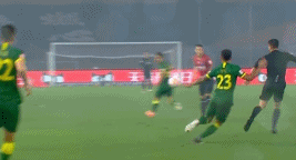 在中超首轮重庆对阵北京国安的比赛发生了有趣的一幕:主裁判沈寅豪喷雾器的泡沫突然全部喷洒在了衣服上。