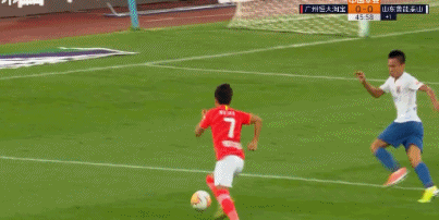 上半场补时第1分钟,韦世豪禁区左侧面对双人包夹内切后低平球传后点,跟进无人防守的杨立瑜面对空门左脚垫射,皮球偏出,恒大错失打破僵局的良机。