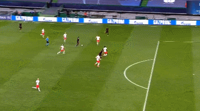 易边再战第50分钟,萨比策禁区右侧起脚传中到门前,奥尔莫高高跃起头球冲顶破门!莱比锡1-0马竞!