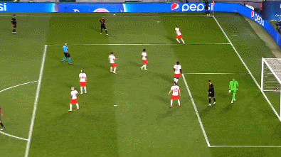比赛开始第3分钟,萨比策弧顶附近分球,安吉利诺左路插上完成传中被防守球员挡出底线。1分钟后,莱比锡左路角球吊入禁区被防守球员头球破坏,外围莱比锡再次传中被防守球员顶了一下但没有出危险区,禁区内无人盯防的哈尔斯滕伯格凌空抽射高出横梁。