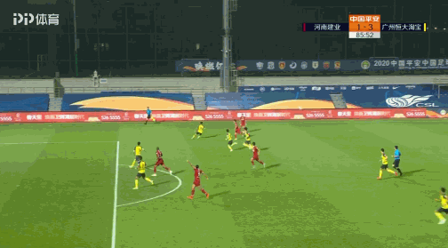 第86分钟,替补出场的宋博轩右路传中球到小禁区右侧,插上的卡兰加左脚停球,然后抢在蒋光太倒地铲球前倒地铲射得手,建业1-3扳回一球。