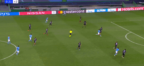 除去这个进球,德布劳内今日最出彩的表现发生在上半场的补时阶段。当时,德布劳内在前场左路带球,他的身边有多达4名防守球员。在抬头看了一下前场的形势后,德布劳内开始“发功”,他用外脚背送出了一脚无比精准的传球,皮球划出美妙的弧线,绕过了里昂的整条后防线,找到了斯特林。