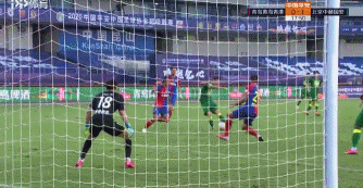 第18分钟,国安角球攻势,金玟哉外围直塞,侯永永禁区右侧停球劲射,皮球被赵石倒地封出,巴坎布跟进面对空门,右脚推射建功,1-0,这是巴坎布本赛季联赛首球。