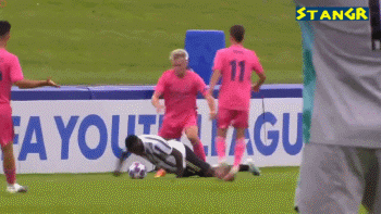 尤文球员恩腾达在中场边线附近倒地,霍尔蒂在死球状态下近距离大脚爆踢,皮球直接闷在恩腾达身上。