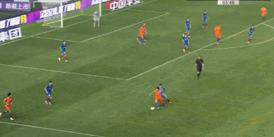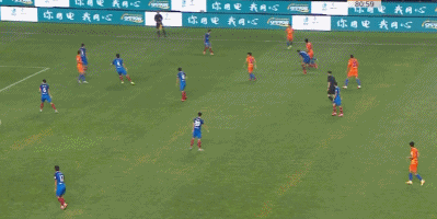 第10分钟,卡兰加前场得球穿裆球突破卡达尔,随后带球突入禁区倒地铲射,蒿俊闵回防积极将球挡出。