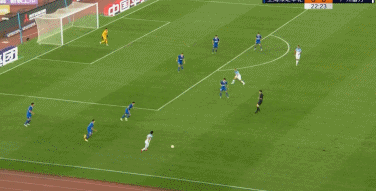 第54分钟,李提香中场策动进攻,萨巴左路带球内切,禁区前沿一脚直塞,扎哈维肋部跟进低射球门近角,皮球被曾诚倒地单掌封出底线。