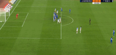 第92分钟,申花持续压制,曹赟定左路45度斜传,找到积极前插的队长莫雷诺,甩头攻门略微高出门梁。
