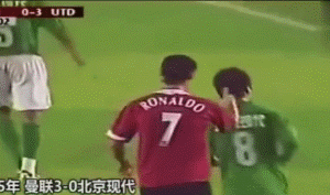 C罗拍了拍杨璞的头,经典一幕出现:曼联有点脏,但跟他们踢太过瘾!
