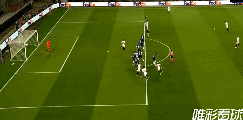 第12分钟,塞维利亚第1球!吕克-德容!右肋部纳瓦斯传中,吕克-德容鱼跃冲顶,距离过近汉达不及拦截!塞维利亚1-1国米!