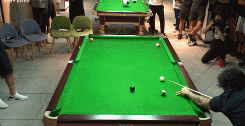 在首轮淘汰赛中,高拉特和丁海峰配合非常默契,特别是上面这个球,高拉特进球同时,白球弹两库走位叫到最后的黑8,非常精细。虽然相较专业人士还有差距,但在业余玩家里,这已经很不错了。