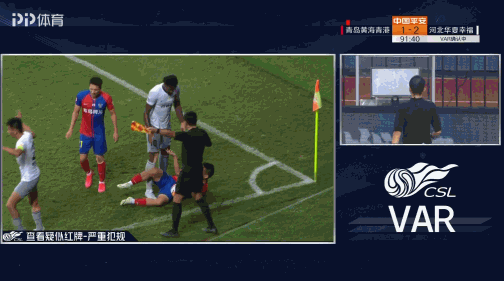 补时阶段,主裁张雷突然和VAR沟通,慢镜头显示,周俊辰在打底护球的时候疑似被张呈栋踩到了手臂。张雷亲自跑到场边观看回放,最终在第93分钟示意张呈栋犯规,吃到第二张黄牌被罚下,他对主裁的判罚也相当不满。