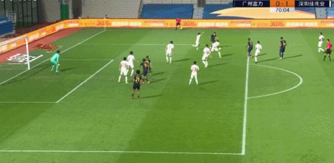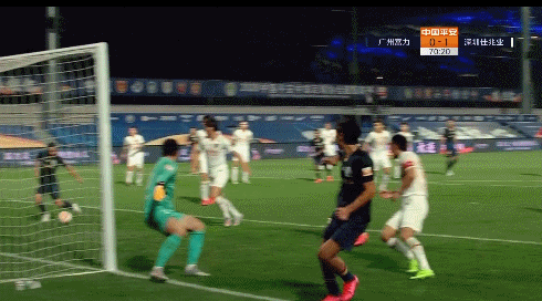 第68分钟,雷纳尔迪尼奥挑传到了禁区左侧,唐淼传中,常飞亚低平球回敲到门前,萨巴拿球门线上想直接两脚夹球往门内吊,被国威抱住没收,富力错失空门机会。