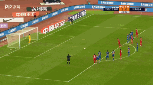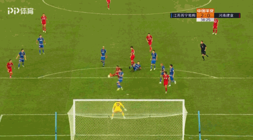 第37分钟,建业前场中路定位球开出调入禁区,多拉多在禁区内卸球后转身被田依浓给铲倒,裁判给了点球机会,多拉多亲自主罚打门被张岩用脚挡出。但裁判哨向示意张岩提前移动需要重罚点球,多拉多第二次主罚仍然推中路破门,建业1-2扳回一球。