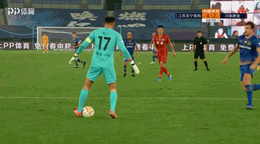 第66分钟,钟晋宝回敲门前,吴䶮得球后双手张开,桑蒂尼插上断球,吴䶮没有任何反应,随后桑蒂尼推射空门!裁判认定进球有效!苏宁4-2建业。