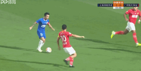 第6分钟,姆比亚从艾克森脚下抢断,申花就此打出反击,朱宝杰转移给左路给的曹赟定,后者拿球内切后抢在郑智封堵前右脚怒射,皮球直入球门右侧死角,申花1-0领先。