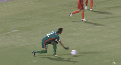 如果说第一球我们还能说是冈本昌弘是大意了,那么仅仅一分钟过后你就不会这么想了。当时山形山神后场抢断,坂元达裕在几乎同样的位置直接选择射门,冈本昌弘这一次没有站在中场附近,但也站位非常靠前,他还拼尽全力地想去作出扑救,但是皮球还是越过了他径直奔向球门。