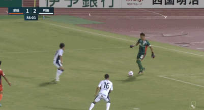 然而这个时候,上半场的主角之一的爱媛门将冈本昌弘再次秀了一把操作。他在门前得球后犹豫不出球,面对町田泽维亚的逼抢时,他顺势给对方前锋来一记“横传”,帮助对方前锋安藤瑞季再次将比分超出。