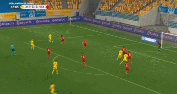在第68分钟时,乌克兰打进了制胜球。米凯里琴科禁区左侧横传,津琴科禁区左上角左脚不停球直接搓射,皮球画出了一道非常美妙的弧线后飞入球门远端死角。在曼城踢左后卫的津琴科,在乌克兰队4231阵型中踢主力前腰。