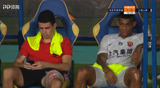 中场休息时,上港核心奥斯卡因为大腿拉伤被换下休息,坐在替补席的他悠闲的玩起了手机。