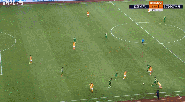 第23分钟,卓尔后场右侧处理球失误,张玉宁得球获得机会,前场左侧的精准传中找到了巴坎布,巴坎布卸下皮球后一脚推射将球送进了球门右下死角,国安1-0领先卓尔。