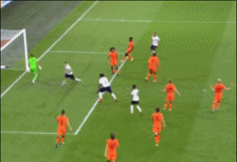 第86分钟,荷兰队禁区内乱战,皮球最后出了底线。