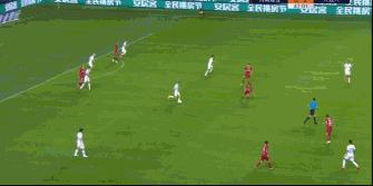 图10:最后时刻遭遇鲁能高空轰炸前赵旭日的肢体动作(五后卫居中那位)