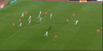 后场长传后龙东与拉尔森在前锋位置上两次策应,哈姆西克在高位有了转移右侧找童磊的机会。这时候,右侧的林良铭内收前插幅度很大,童磊获得了巨大的空位去“瞄准”传中,脚法出色的他自然能兜出快速的弧线找到队友。剩下的,就是以龙东、拉尔森为主导的低位冲击了。