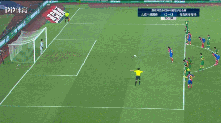 第14分钟,王栋主罚左侧任意球开入禁区,克莱奥插上伸腿碰球,撞在了出击的邹德海腹部,吃到黄牌。