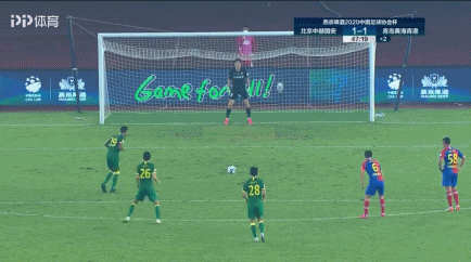 第29分钟,黄海反击,一脚直塞送入禁区,巴力插上打门被封堵,邹德海拿到球之后不慎脱手,杨宇插上得球被邹德海放倒,马宁果断判罚点球。克莱奥主罚推射球门左侧下角,骗过门将将球打进,青岛1-0领先国安。