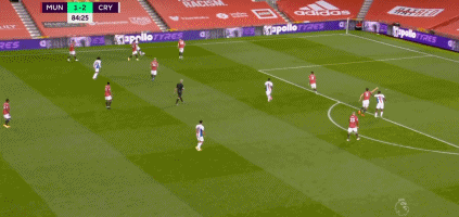 扎哈在运动战一直给曼联制造着威胁,第66分钟他利用速度优势单刀突入禁区射门得分,只可惜他速度实在有点快越位进球无效。扎哈的进球没有继续等太久,第74分钟他终于破门。第71分钟水晶宫获得点球,这个点球一开始是阿尤主罚被德赫亚扑出,不过因为德赫亚提前移动重新主罚,重罚换成了扎哈主罚,扎哈顶住压力把球打入,把比分扩大为2-0。