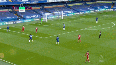 菲尔米诺在禁区左侧逼抢,这使得切尔西后卫不得不把球回传给门将。看到后卫回传后,菲尔米诺伸出右手指向凯帕,他“指挥”马内跑位。在菲尔米诺鬼魅的笑容下,马内果然完成抢断,并将比分改写为2-0。
