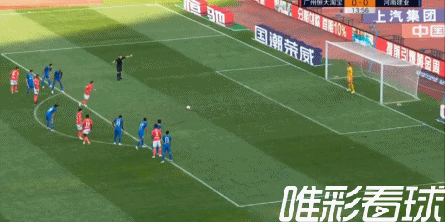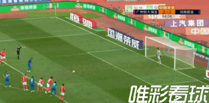 13分钟何超禁区内被卡兰加从身后踢倒,主裁王竞判罚点球,艾克森主罚命中,1-0,恒大领先!