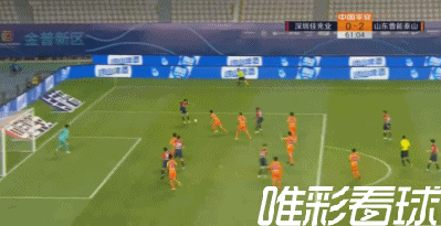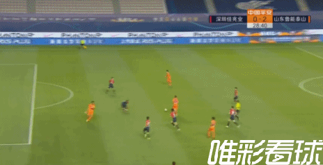 第42分钟,格德斯一脚斜塞穿透防线,段刘愚插上几乎形成单刀,但是没能碰到皮球,国威出击将球没收。上半场补时第1分钟,吴兴涵左路得球突入禁区,葛振倒地放铲将其放倒,主裁判判罚点球。佩莱主罚,面对门将推射中路破门,鲁能扩大比分,2-0!