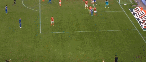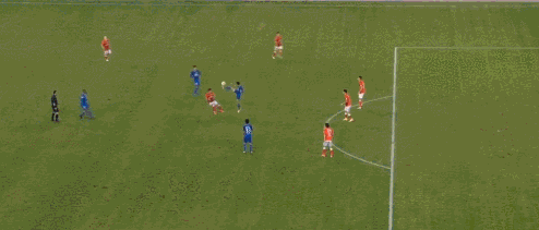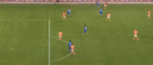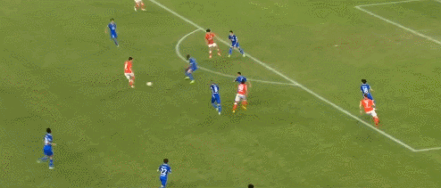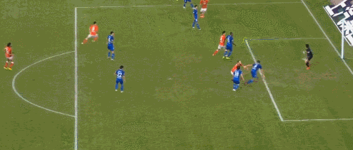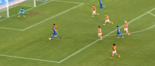 第90分钟,王鹏右侧边线出掷出大力手抛球给到禁区,混战中门前穆里奇的头球攻门被颜骏凌化解。