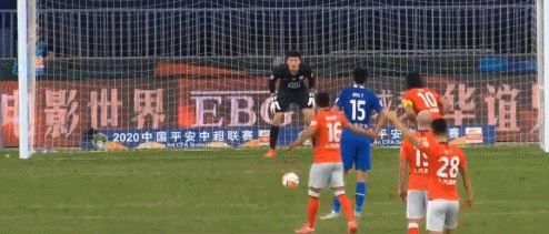 第56分钟,上港前场获得一个位置较远的定位球机会,胡尔克开出的任意球被邵镤亮扑了一下,随后皮球击中球门横梁弹出!